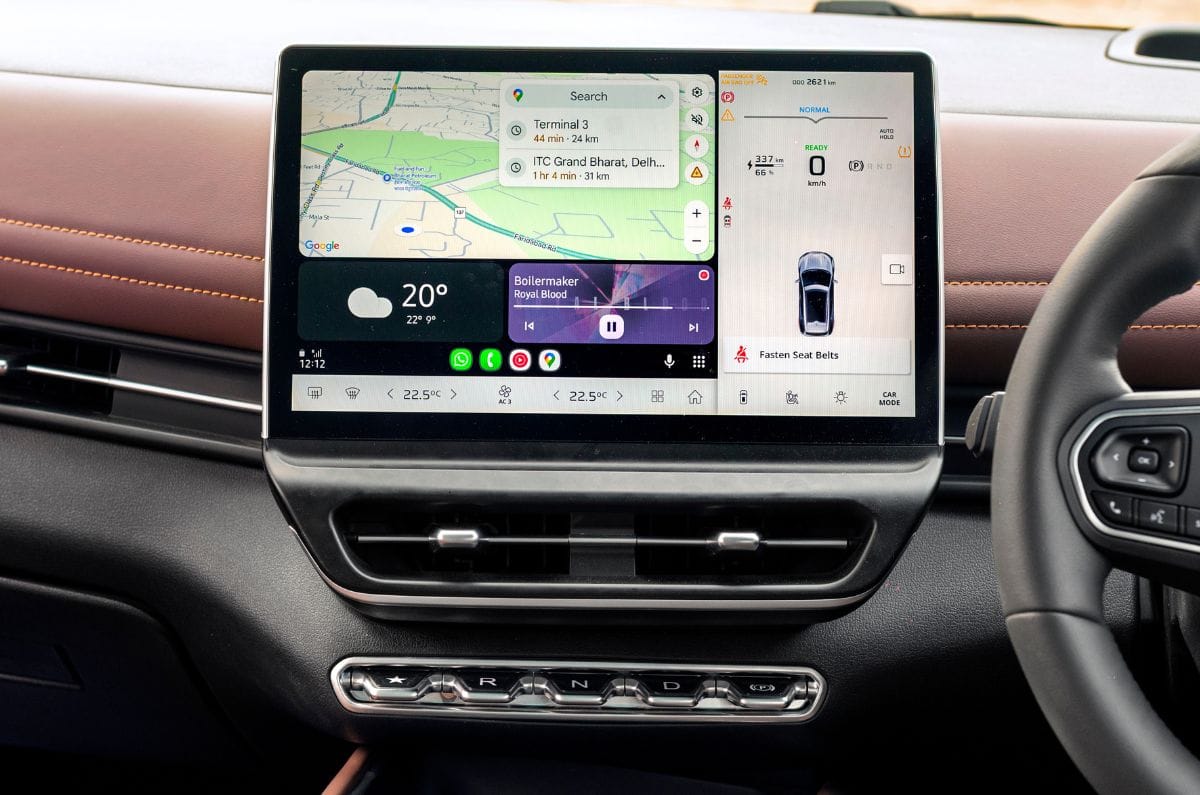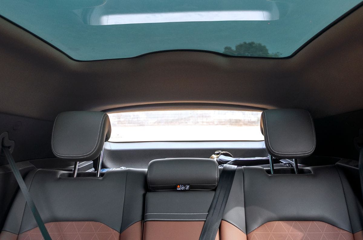 Our test car was the top-spec Sky Infinity variant and as such was packed with all the goodies. Features include the 12.9-inch infotainment touchscreen, an 8-speaker audio system, dual-zone auto climate control, 8-way power adjustable driver’s seat, ventilated front seats, vegan leather upholstery, a heads-up display, wireless charger, a panoramic glass roof, a powered tailgate, LED lights all around, an auto-dimming IRVM and much more.