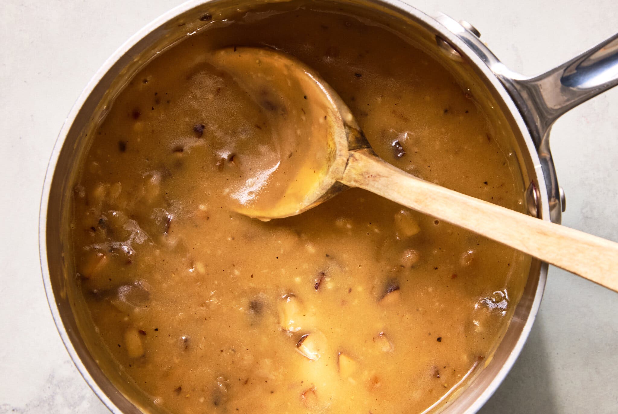 “I have used this for the past four Thanksgivings and have no plans to stop. I use shallots for the onions. Adding the drippings from your roast is where the magic happens, transforming a ho-hum gravy into something scrumptious.”