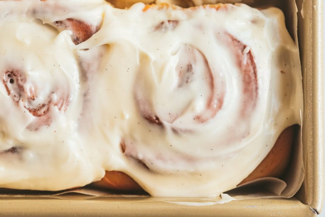 Spread the frosting generously over the warm rolls and let it melt into every swirl and corner. Let them cool for 10 more minutes (if you can wait) before serving.