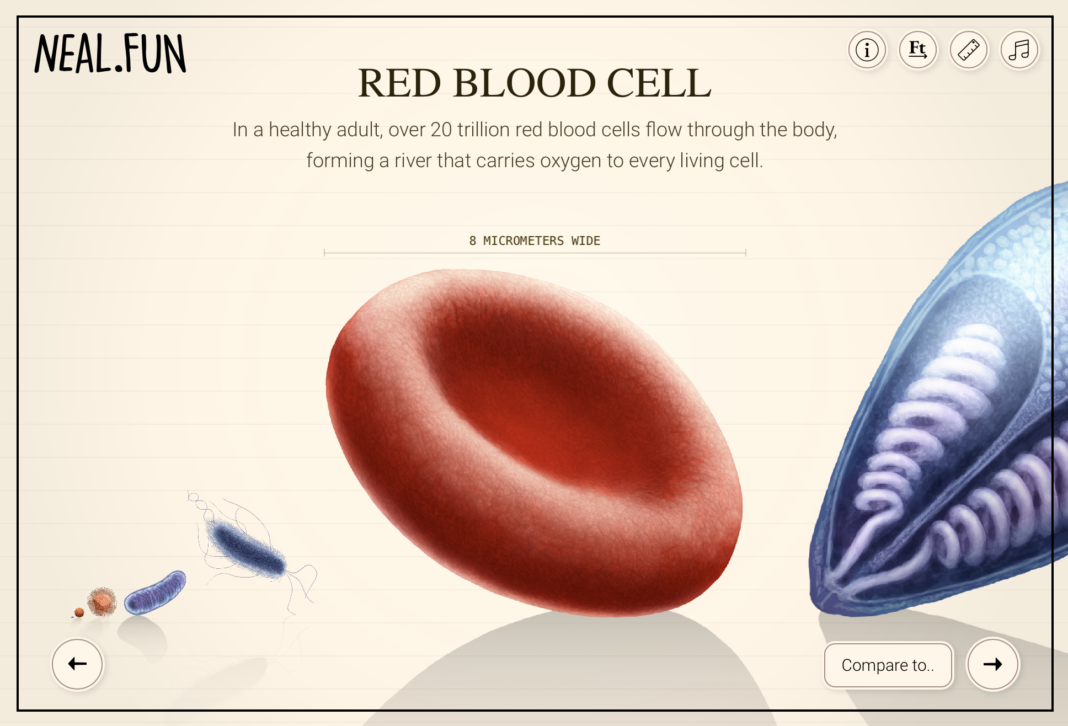 Neal Agarwal published another gift to the internet with Size of Life. It shows the scale of living things, starting with DNA, to hemoglobin, and keeps going up.